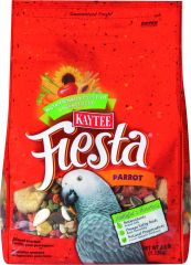 KAYTEE Fiesta Gourmet food helps birds thrive! Packed with a fortified mix of fruits, nuts, vegetables, seeds, and healthful whole grains, Fiesta contains essential nutrients for healthy birds. Balanced Omega-3 and Omega-6 Polyunsaturated fatty acids develop and maintain shiny feathers, and can help lower cholesterol. Powerful antioxidants boost immune systems to fight disease. Natural preservatives ensure freshness and great taste. Fiesta – balancing fun food and powerful nutrition. Fiesta stays fresh in its own resealable bag.