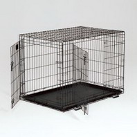 Fold carry wire dog crate. For housebreaking, indoor containment and travel.Second door on the side for access in vehicles and rooms with unusual configurations.Wire Abs Plastic