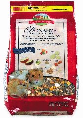 Hamsters and Gerbils require a rich, varied diet of quality seeds, grains, vitamin enriched pellets, fruits, nuts, and veggies. L/M Animal Farms has responded to the dietary needs of your small animal by creating Bonanza. This gourmet diet is highly palatable. Bonanza Bounti-Buffet is a blend of carefully selected seeds, grains, fruits, and vegetables. It is fortified with vitamins. Packaged in L/M Barrier Loc resealable package that protects freshness and flavor.