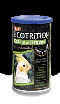 Ecotrition Grains and Greens Variety Blend adds essential variety with a nutritious and tantalizing blend containing garden fresh vegetables like broccoli, carrots, and leeks and select grains including buckwheat and barley to ensure your pet bird stays interested in his meal every day!