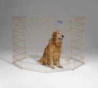 Use for a variety of pets. Wire mesh keeps pet in, intruders out. Secure double latch door access. Easyto carry, fold flat for convenient storage. Providesfreedom to move and play. Easy to set.
