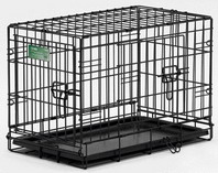 Double door home training crate for dogs. Allows you to adjust the length of the living area as your puppy grows into its home. Easily sets up and folds down to portable size. No tools required.