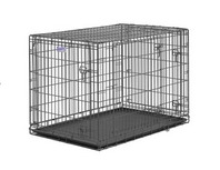 Triple door home training crate for dogs. Allows you to adjust the length of the living area as your puppy grows into its home. Easily sets up and folds down to portable size. No tools required.