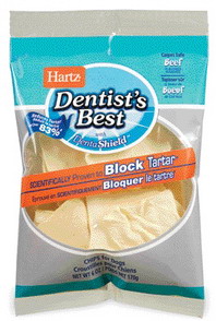 Hartz dentist s best with dentashield rawhide. Is scientifically proven to reduce tartar up to 83%. The technology used in hartz dentist s best with dentashieldis the first and only rawhide chew that blocks tartar. Give this reward daily to maximize dental benefits.